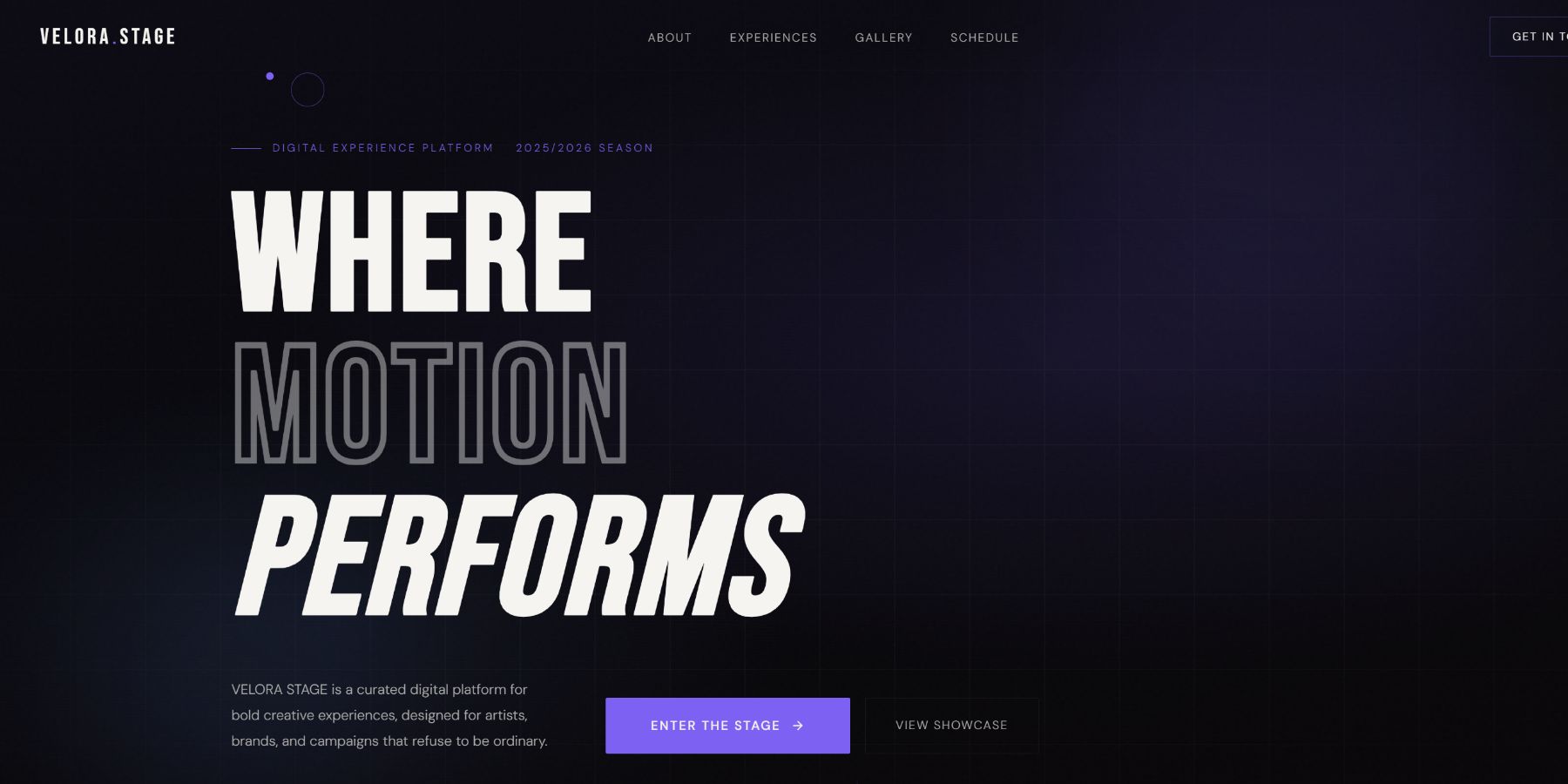 VELORA STAGE다이내믹한 비주얼과 공연 정보 전달을 함께 담은 구성