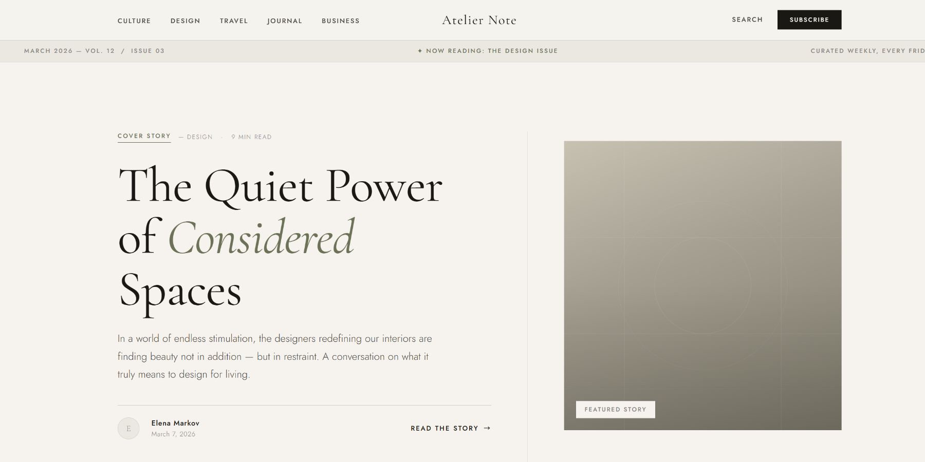 ATELIER NOTE아티클 중심 정보 구조와 감성 타이포그래피를 결합한 예시